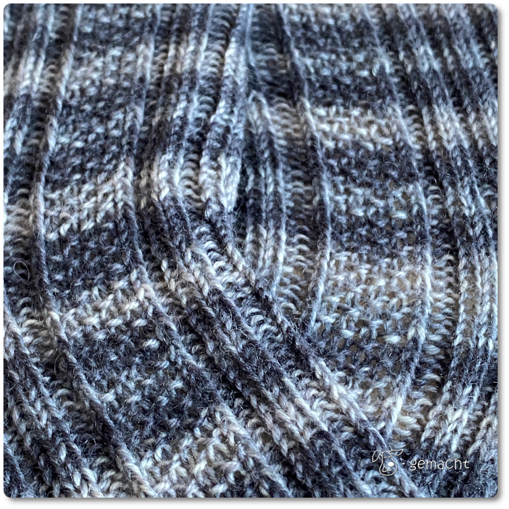 Nadeln 1 und 4: weiter im Bündchenmuster,